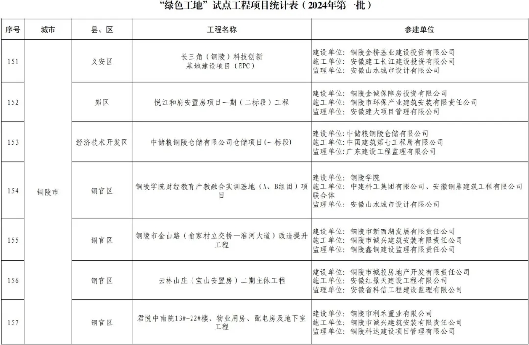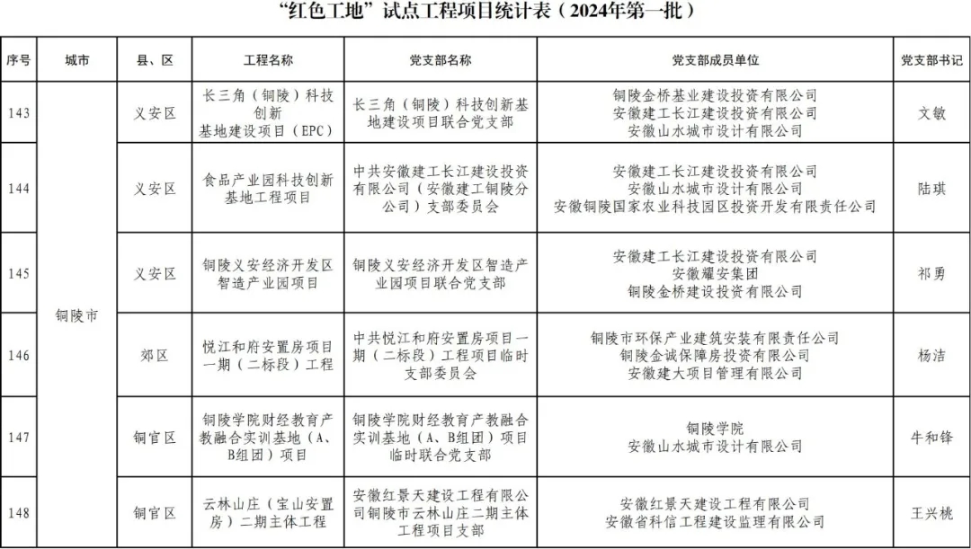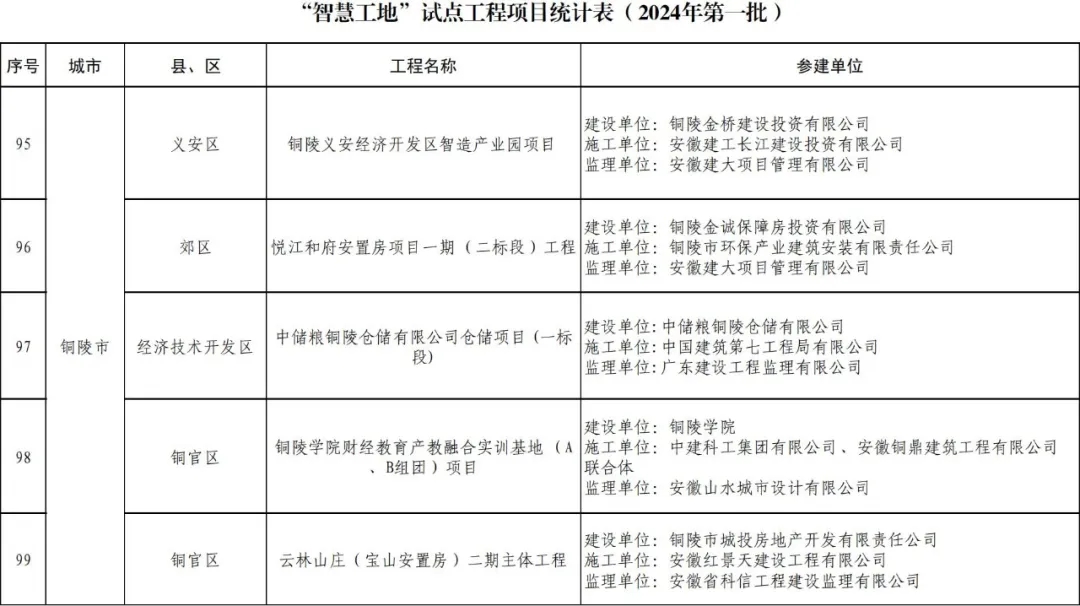 目前,安徽省2024年“四個工地”(第一批)試點工程項目名單已公布,我市共有“紅色工地”試點工程項目6個,“綠色工地”試點工程項目7個,“智慧工地”試點工程項目5個,“安心工地”試點工程項目13個。