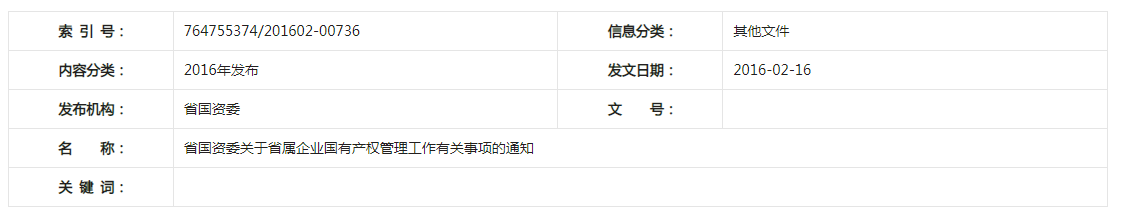 省國資委關(guān)于省屬企業(yè)國有產(chǎn)權(quán)管理工作有關(guān)事項的通知