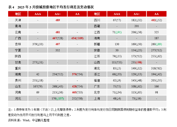 7. 3月份廣西、山西等地區(qū)城投利差走擴(kuò)明顯