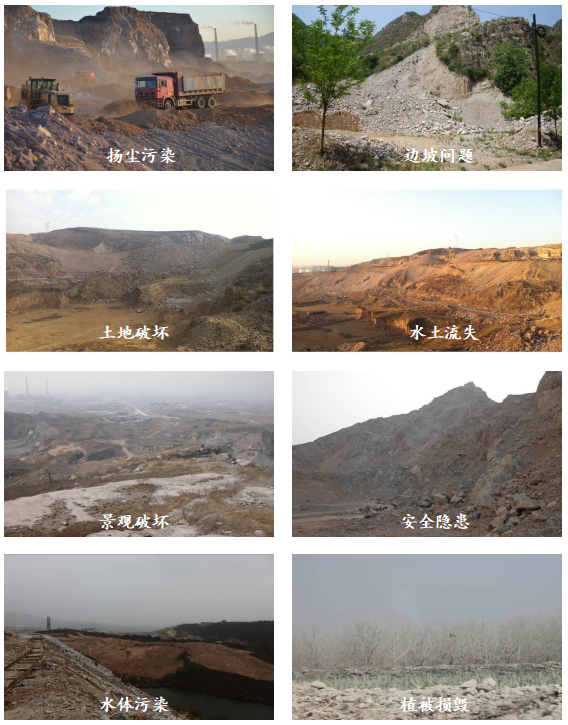 4. 礦山水土及大氣環境污染:大氣、水環境、土壤環境、噪聲、固體廢棄物污染等;