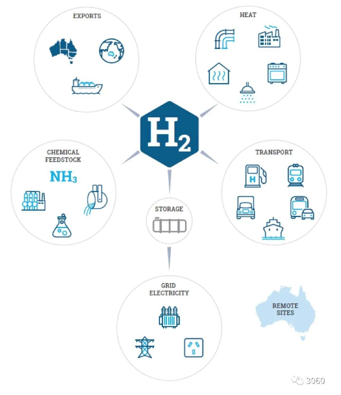 預計到2030年,全球大規(guī)模綠氫生產(chǎn)基地和運輸基礎(chǔ)設(shè)施布局完備,屆時氫可以從澳大利亞、智利或中東等地運送到美國、歐洲、日本等需求中心地區(qū),儲運成本為有望降低至2-3美元/公斤。低廉的氫獲取成本加上具有經(jīng)濟性的儲運成本,將促成全球氫能貿(mào)易格局,釋放更多氫能應用(例如運輸、化工、冶煉、原料等)的需求(見圖3)。下文將展開討論。