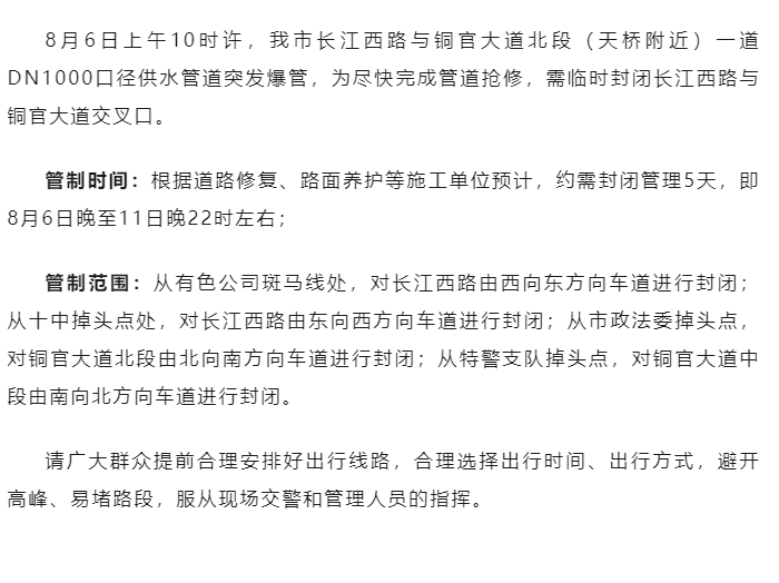 銅陵發(fā)布:最新通知!實(shí)行臨時(shí)交通管制!