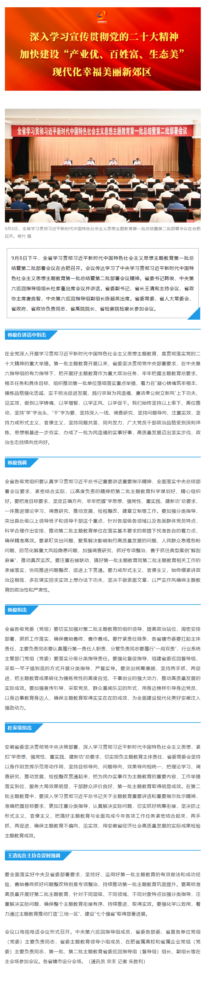 全省學習貫徹習近平新時代中國特色社會主義思想主題教育第一批總結暨第二批部署會議召開 韓俊杜家毫講話