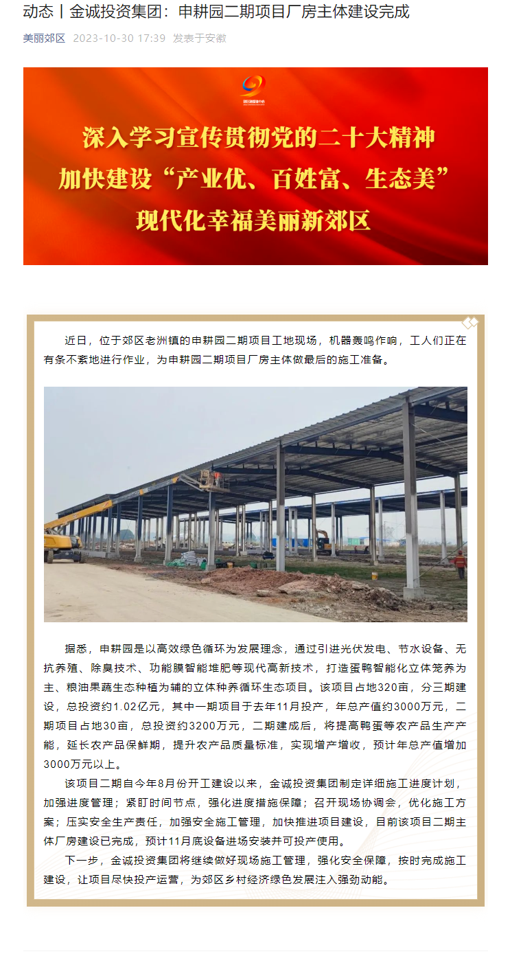 動(dòng)態(tài)丨金誠投資集團(tuán):申耕園二期項(xiàng)目廠房主體建設(shè)完成