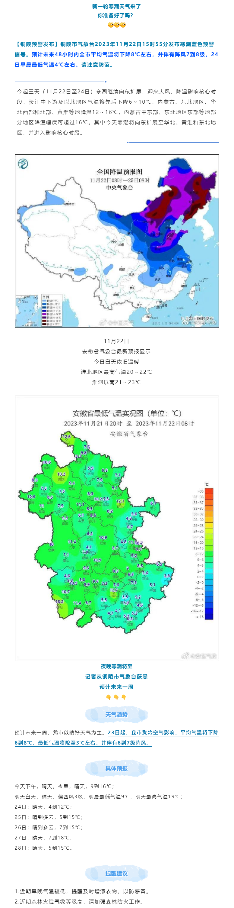 銅陵發布寒潮預警!