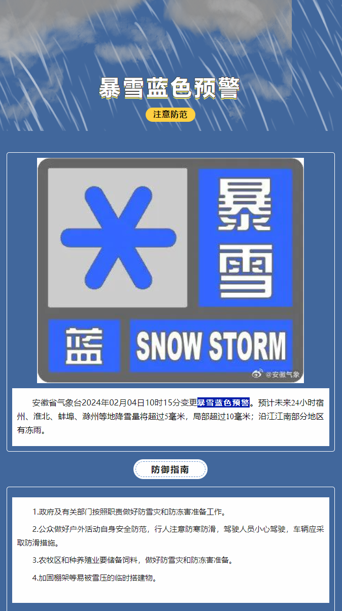 2月4日安徽變更暴雪藍色預警