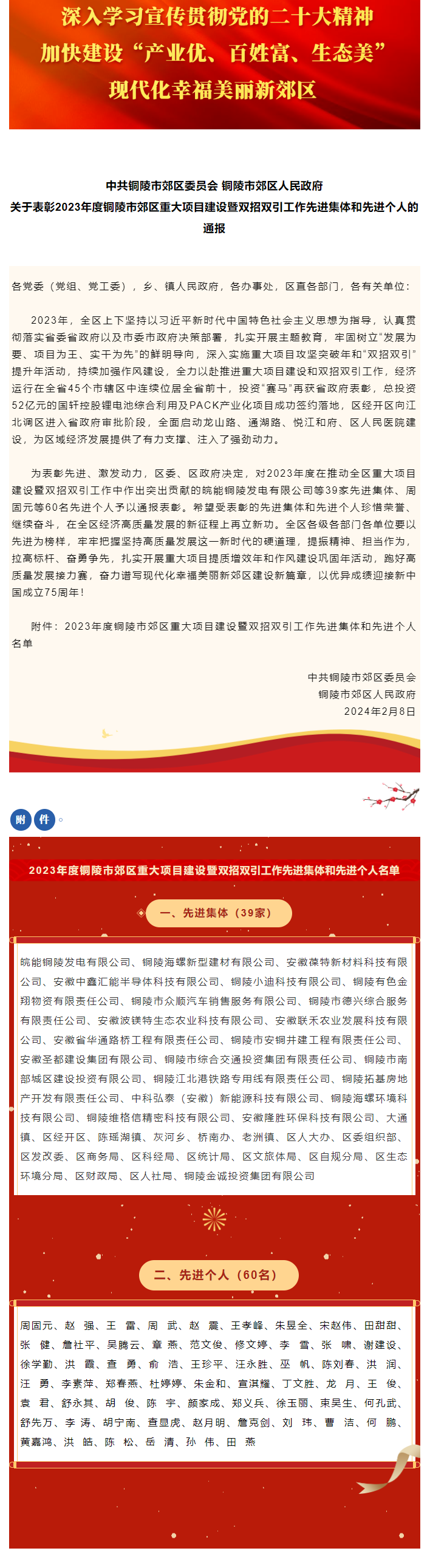 轉載:中共銅陵市委 銅陵市人民政府 關于表彰2023年度銅陵市經濟高質量發展先進集體和先進個人的通報