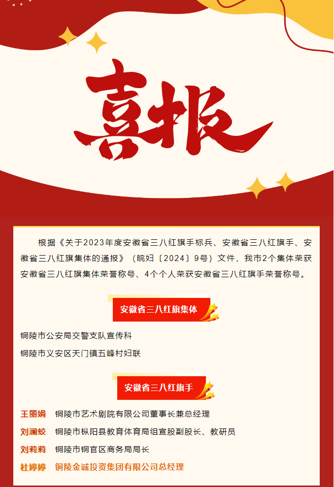 轉載:祝賀!她榮獲安徽省三八紅旗手榮譽稱號!
