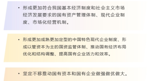 該任務(wù)強(qiáng)調(diào)市場環(huán)境,主要有以下三方面內(nèi)容:一是加快健全以管資本為主的國有資產(chǎn)監(jiān)管體制;二是完善企業(yè)功能界定與分類;三是鼓勵國有企業(yè)同各類所有制企業(yè)加強(qiáng)合作。