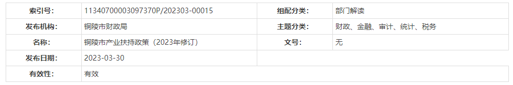 【轉載-政策文件】銅陵市產業扶持政策(2023年修訂)